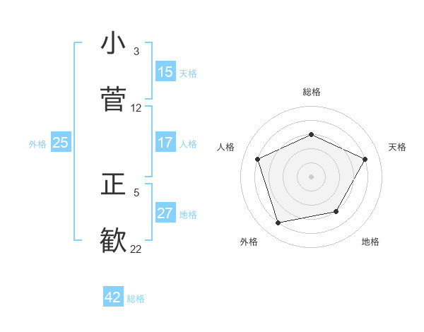 小菅 正歓さんを姓名の画数から五運を鑑定