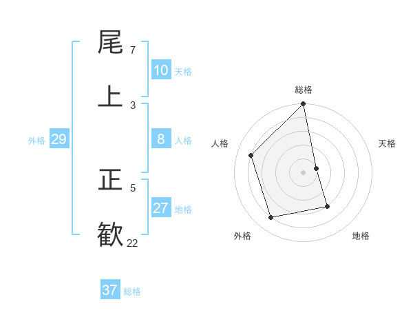 尾上 正歓さんを姓名の画数から五運を鑑定
