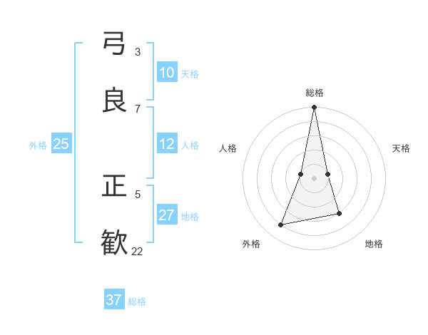 弓良 正歓さんの総格は37画の5点!