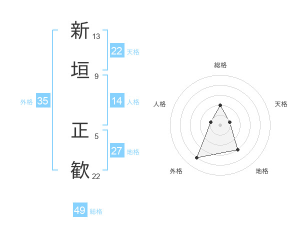 新垣 正歓さんを姓名の画数から五運を鑑定