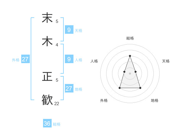 末木 正歓さんの総格は36画の3点!