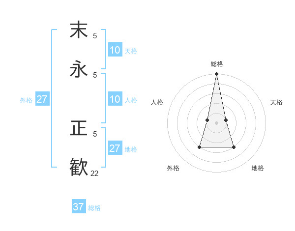 末永 正歓さんの総格は37画の5点!