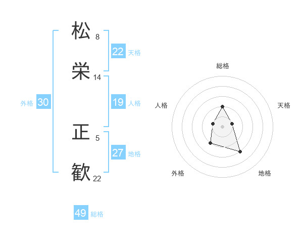 松栄 正歓さんの総格は49画の2点!