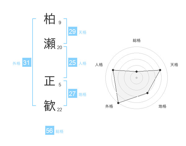 柏瀬 正歓さんの外格は31画の5点!