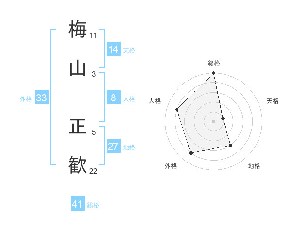 梅山 正歓さんを姓名の画数から五運を鑑定