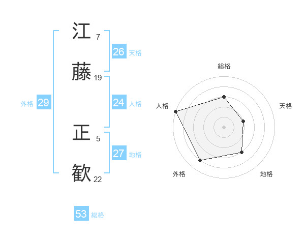 江藤 正歓さんを姓名の画数から五運を鑑定