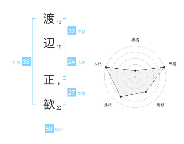 渡辺 正歓さんの天格は32画の5点!