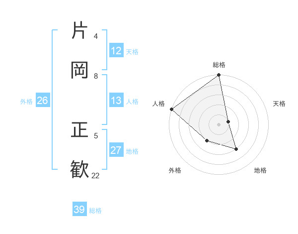 片岡 正歓さんの総格は39画の5点!