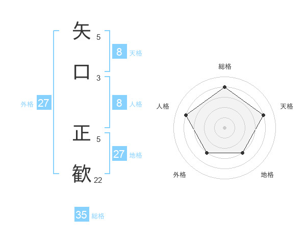 矢口 正歓さんの天格は8画の4点!