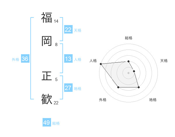 福岡 正歓さんを姓名の画数から五運を鑑定