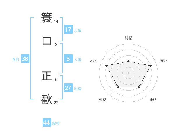 簑口 正歓さんの天格は17画の4点!