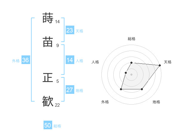 蒔苗 正歓さんを姓名の画数から五運を鑑定