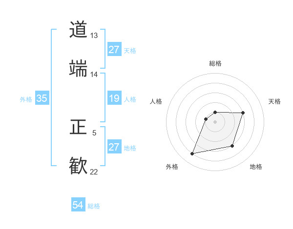 道端 正歓さんの総格は54画の1点!
