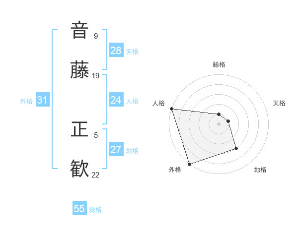 音藤 正歓さんの外格は31画の5点!