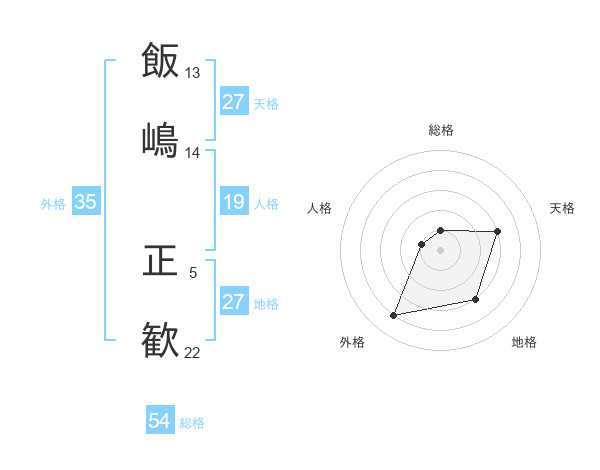 飯嶋 正歓さんの地格は27画の3点!