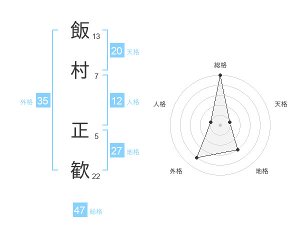 飯村 正歓さんを姓名の画数から五運を鑑定