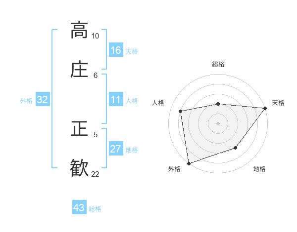 高庄 正歓さんの総格は43画の2点!