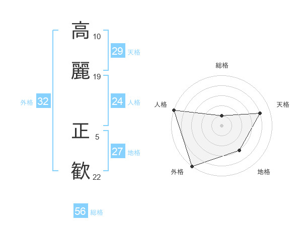 高麗 正歓さんの総格は56画の1点!