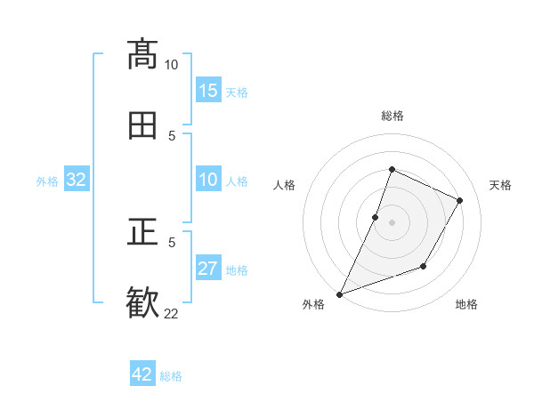 髙田 正歓さんの総格は42画の3点!
