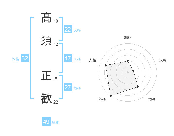 髙須 正歓さんの総格は49画の2点!