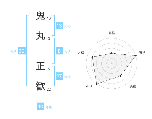 鬼丸 正歓さんを姓名の画数から五運を鑑定