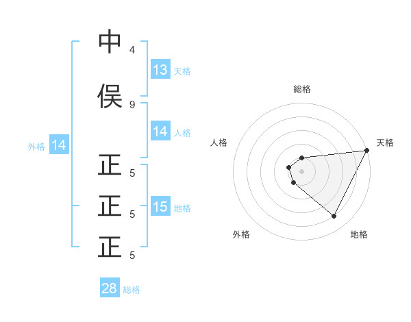 中俣 正正正さんの天格は13画の5点!