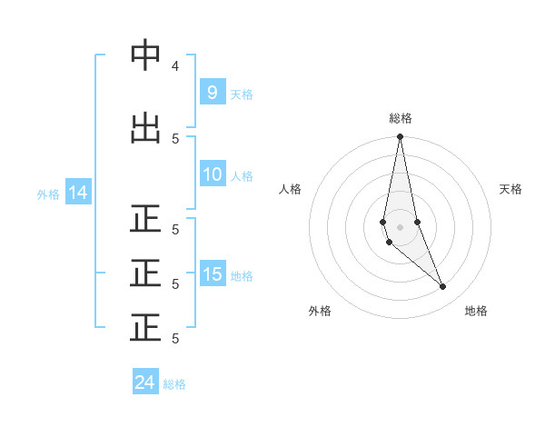 中出 正正正さんの総格は24画の5点!