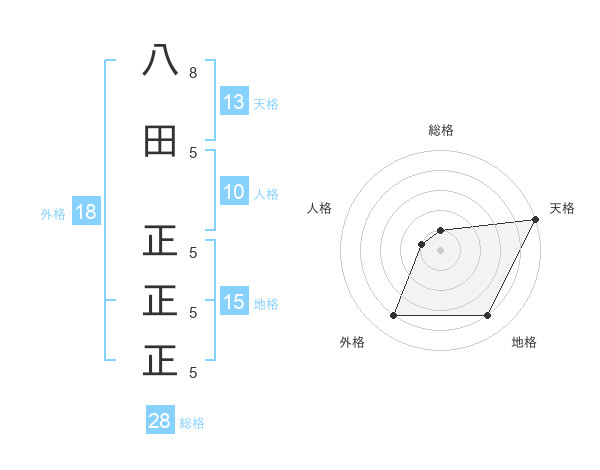 八田 正正正さんの天格は13画の5点!