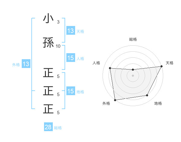 小孫 正正正さんの外格は13画の5点!