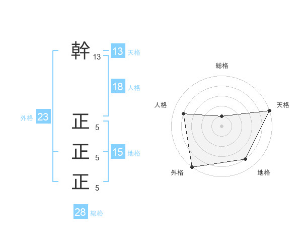 幹 正正正さんの外格は23画の5点!