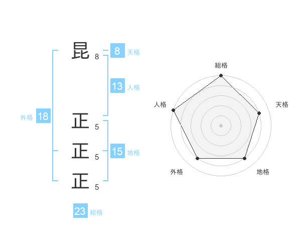 昆 正正正さんの総格は23画の5点!