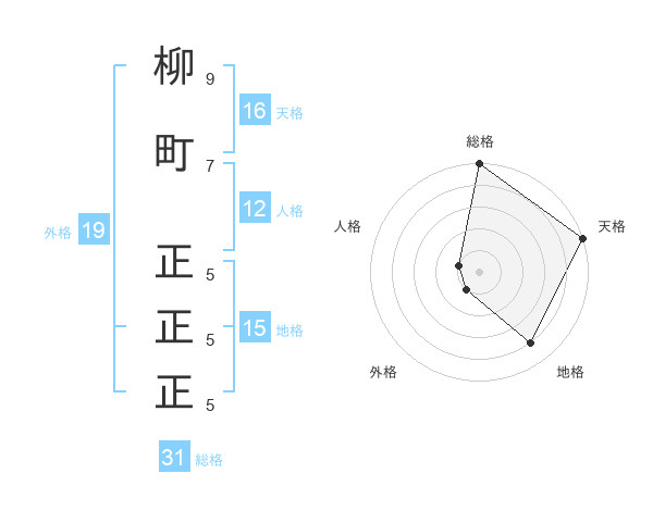 柳町 正正正さんを姓名の画数から五運を鑑定