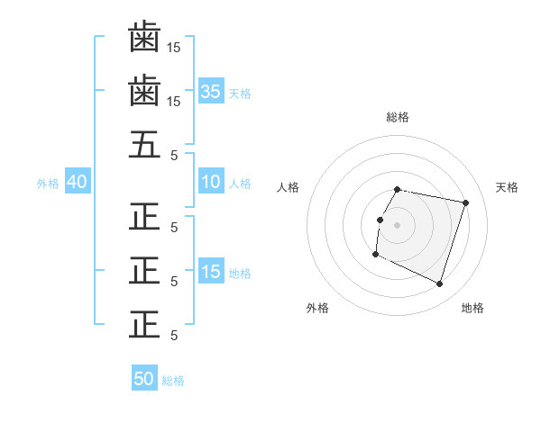 歯歯五 正正正さんの地格は15画の4点!