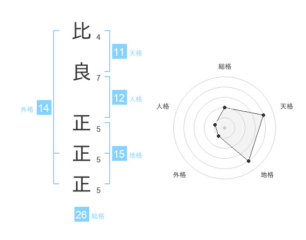 比良 正正正さんの総格は26画の2点!