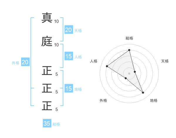 真庭 正正正さんの総格は35画の4点!