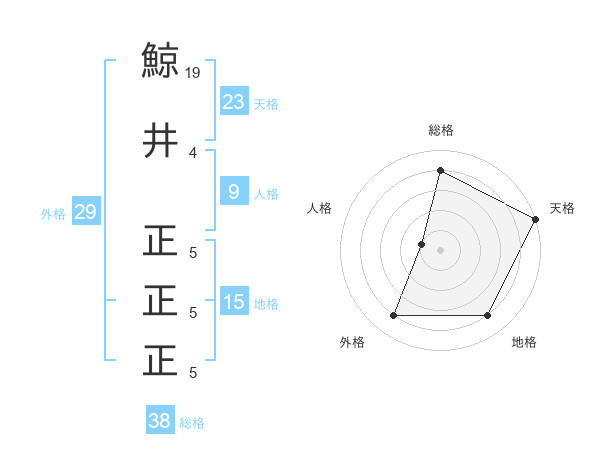 鯨井 正正正さんの天格は23画の5点!