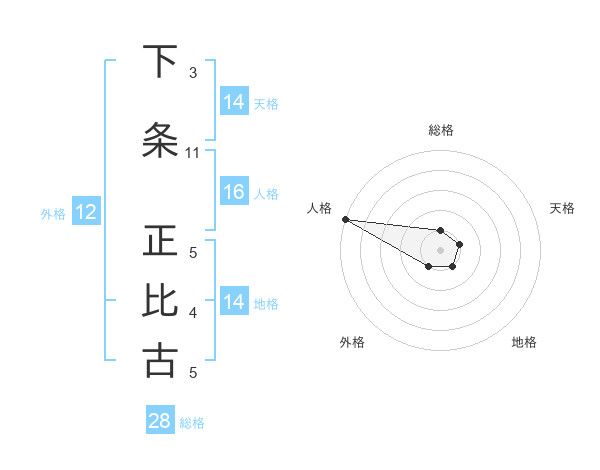 下条 正比古さんの天格は14画の1点!
