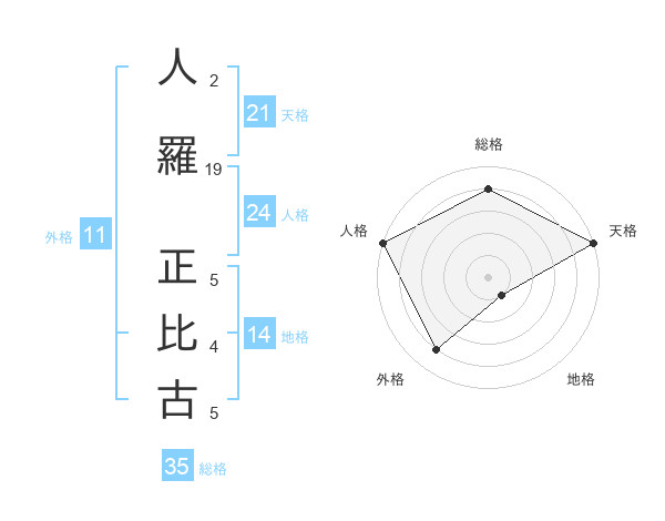 人羅 正比古さんの総格は35画の4点!