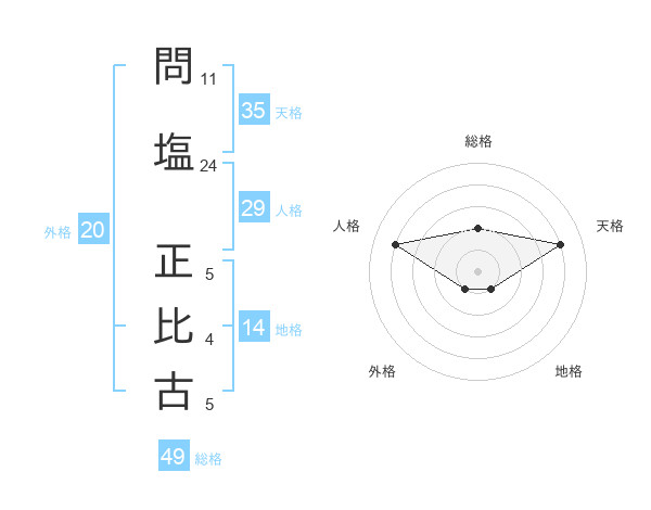 問塩 正比古さんの総格は49画の2点!