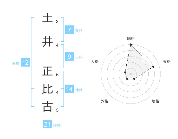 土井 正比古さんの総格は21画の5点!