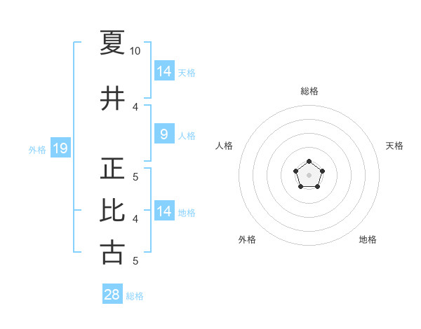 夏井 正比古さんの天格は14画の1点!