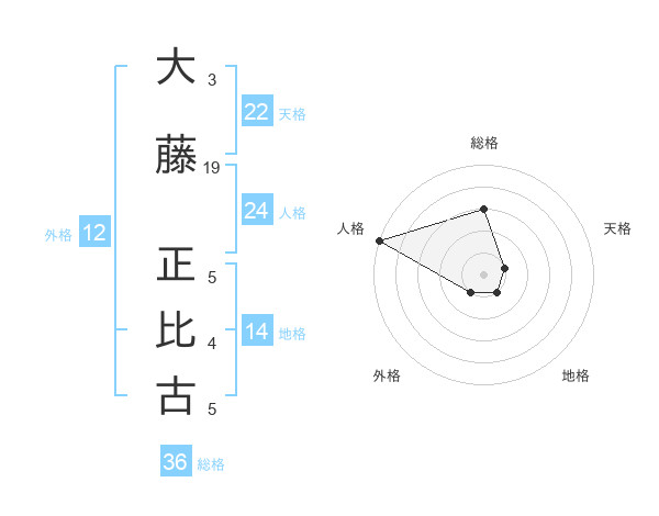 大藤 正比古さんの地格は14画の1点!
