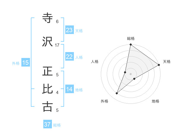 寺沢 正比古さんを姓名の画数から五運を鑑定