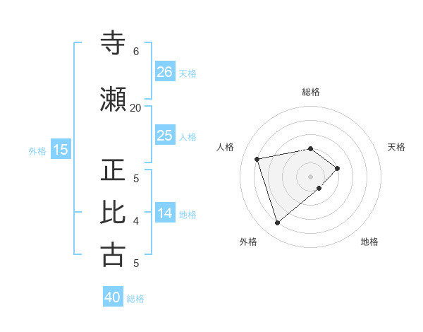 寺瀬 正比古さんを姓名の画数から五運を鑑定