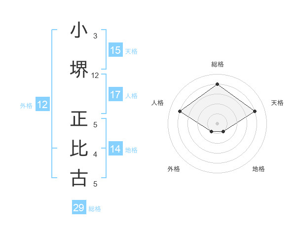 小堺 正比古さんを姓名の画数から五運を鑑定