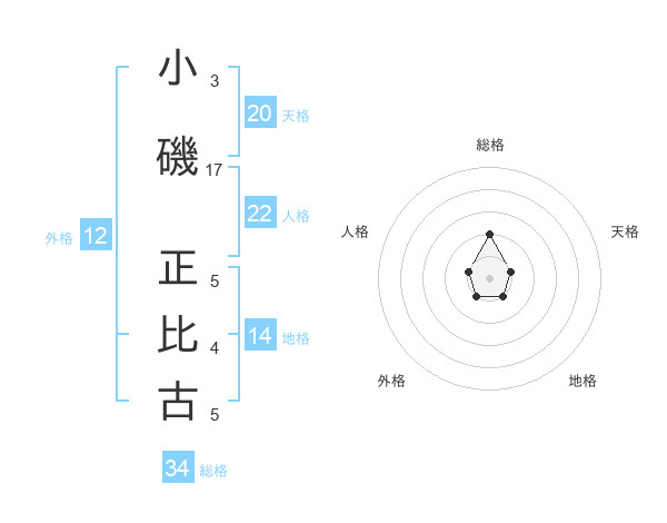 小磯 正比古さんを姓名の画数から五運を鑑定