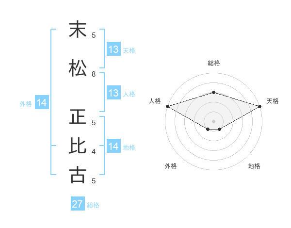末松 正比古さんの天格は13画の5点!