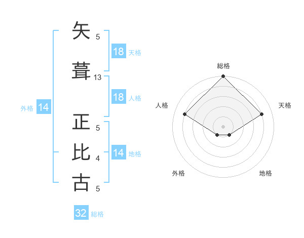 矢葺 正比古さんの総格は32画の5点!