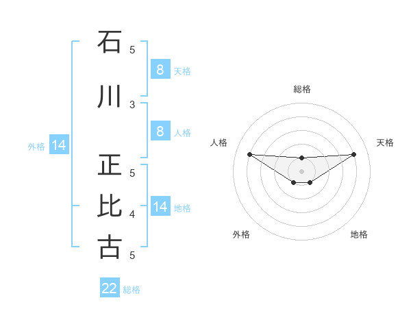 石川 正比古さんの総格は22画の1点
