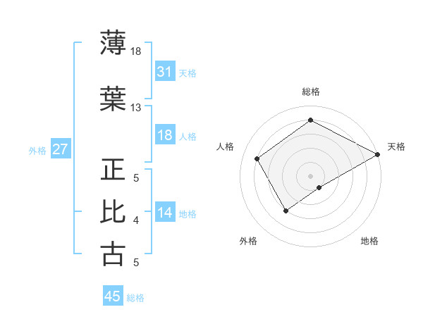 薄葉 正比古さんの総格は45画の4点!